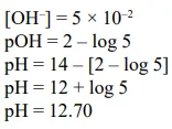 $\mathrm{NaOH}$ is a strong base. What will be pH of $5.0 \times 10^{-2} \mathrm{M} \mathrm{NaOH}$ solution ? $(\log 2=0.3)$