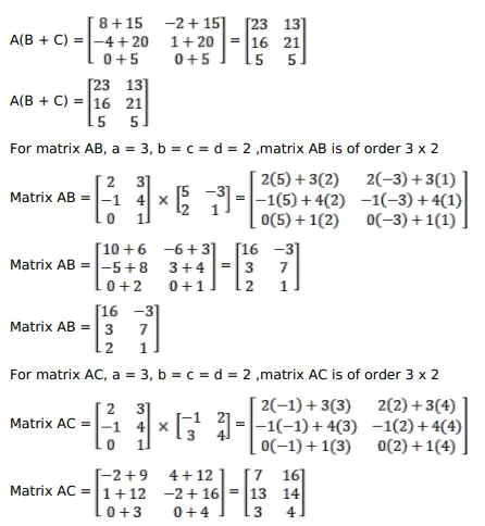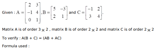 Question: Verify that $A(B+C)=(A B+A C)$, when
