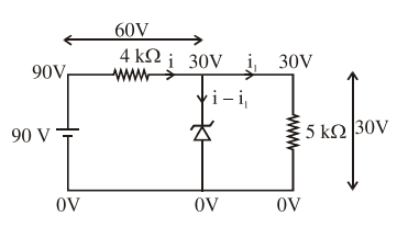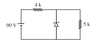 The zener diode has a $\mathrm{V}_{\mathrm{z}}=30 \mathrm{~V}$. The current passing through the diode for the following circuit is ......... mA.