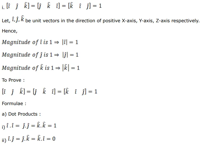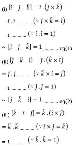 i. $\left[\begin{array}{lll}\hat{\imath} & \hat{\jmath} & \hat{k}\end{array}\right]=\left[\begin{array}{lll}\hat{\jmath} & \hat{k} & \hat{\imath}\end{array}\right]=\left[\begin{array}{lll}\hat{k} & \hat{\imath} & \hat{\jmath}\end{array}\right]=1$