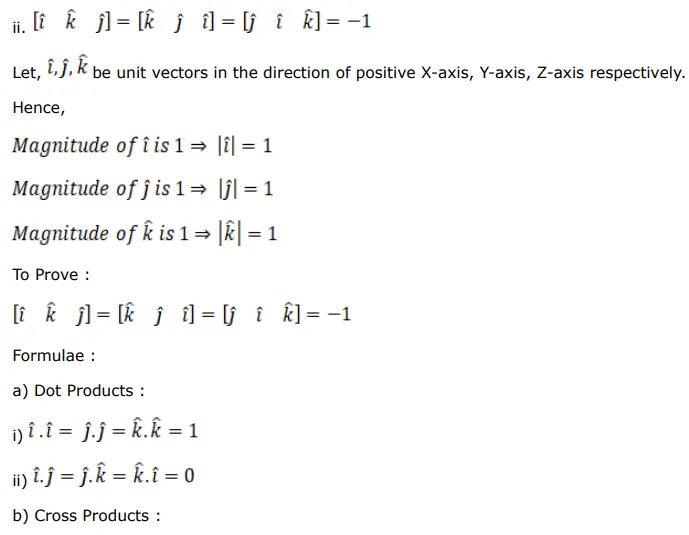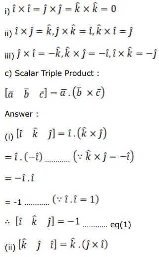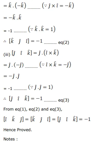 ii. $\left[\begin{array}{lll}\hat{\imath} & \hat{k} & \hat{\jmath}\end{array}\right]=\left[\begin{array}{lll}\hat{k} & \hat{\jmath} & \hat{\imath}\end{array}\right]=\left[\begin{array}{lll}\hat{\jmath} & \hat{\imath} & \hat{k}\end{array}\right]=-1$