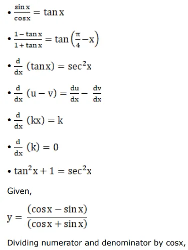If $y=\frac{(\cos x-\sin x)}{(\cos x+\sin x)}$, prove that $\frac{d y}{d x}+y^{2}+1=0$