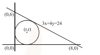 If the line $3 x+4 y-24=0$ intersects the $x$-axis at the point $\mathrm{A}$ and the $\mathrm{y}$-axis at the point $\mathrm{B}$, then the incentre of the triangle $\mathrm{OAB}$, where $\mathrm{O}$ is the origin, is