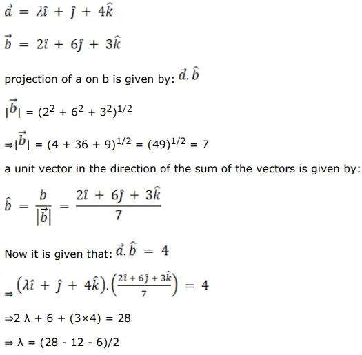 Find the value of $\lambda$ when the projection of $\vec{a}=(\lambda \hat{i}+\hat{j}+4 \hat{k})$ on $\overrightarrow{\mathrm{b}}=(2 \hat{\mathrm{i}}+6 \hat{\mathrm{j}}+3 \hat{\mathrm{k}})$ is 4 units.