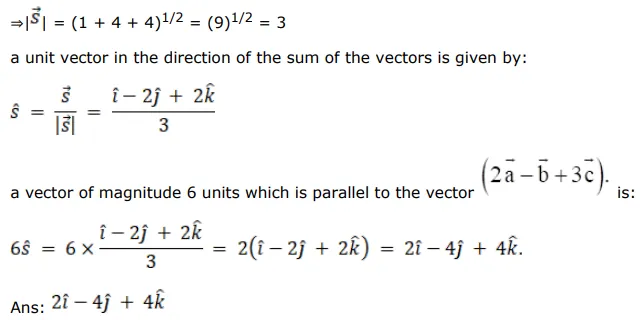 If $\overrightarrow{\mathrm{a}}=(\hat{\mathrm{i}}+\hat{\mathrm{j}}+\hat{\mathrm{k}}), \overrightarrow{\mathrm{b}}=(4 \hat{\mathrm{i}}-2 \hat{\mathrm{j}}+3 \hat{\mathrm{k}})$ and $\overrightarrow{\mathrm{c}}=(\hat{\mathrm{i}}-2 \hat{\mathrm{j}}+\hat{\mathrm{k}})$ find a vector of magnitude 6 units which is parallel to the vector $(2 \overrightarrow{\mathrm{a}}-\overrightarrow{\mathrm{b}}+3 \overrightarrow{\mathrm{c}})$