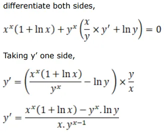 If $\left(x^{x}+y^{x}\right)=1$, show that $\frac{d y}{d x}=-\left\{\frac{x^{x}(1+\log x)+y^{x}(\log y)}{x y^{x-1}}\right\}$