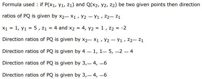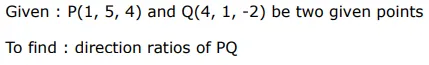 If $P(1,5,4)$ and $Q(4,1,-2)$ be two given points, find the direction ratios of $P Q$.