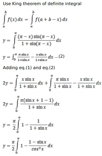 $\int_{0}^{\pi} \frac{x \sin x}{(1+\sin x)} d x=\pi\left(\frac{\pi}{2}-1\right)$