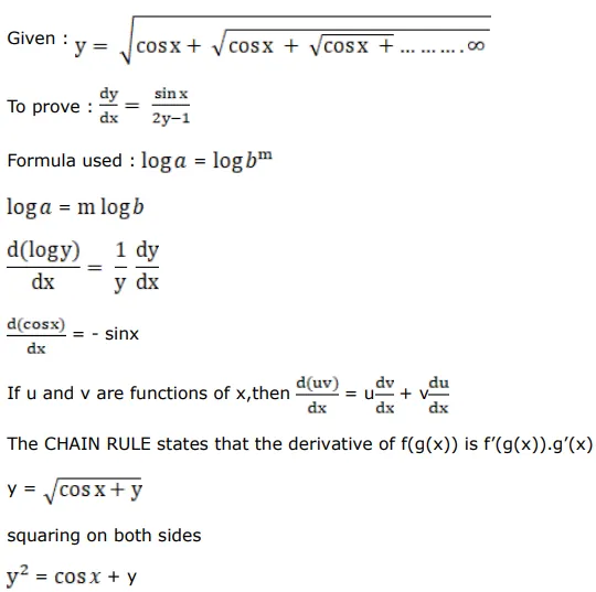If $y=\sqrt{\cos x+\sqrt{\cos x+\sqrt{\cos x}+\ldots \infty}}$, prove that $\frac{d y}{d x}=\frac{\sin x}{(1-2 y)}$