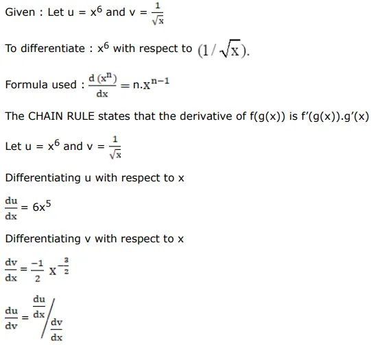 Differentiate $\mathrm{X}^{6}$ with respect to $(1 / \sqrt{\mathrm{x}})$