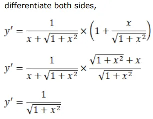 If $y=\log \left(x+\sqrt{1+x^{2}}\right)$, prove that $\frac{d y}{d x}=\frac{1}{\log \left(x+\sqrt{1+x^{2}}\right)} \cdot \frac{1}{\sqrt{1+x^{2}}}$