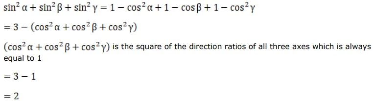 If a line makes angles $a, \beta$ and $y$ with the $x$-axis, $y$-axis and $z$-axis respectively then $\left(\sin ^{2} a+\sin ^{2} \beta\right.$ $\left.+\sin ^{2} y\right)=?$