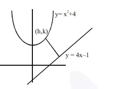 $\mathrm{d}=\mathrm{AB}=\left|\frac{\mathrm{k}-4 \mathrm{~h}+1}{\sqrt{5}}\right|=\left|\frac{\mathrm{h}^{2}-4-4 \mathrm{~h}+1}{\sqrt{5}}\right|$