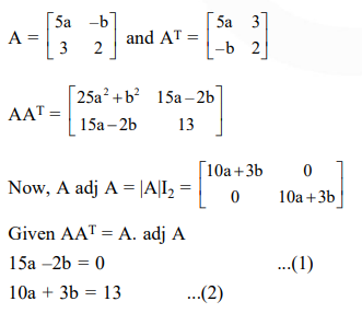 Question: If $\mathrm{A}=\left[\begin{array}{cc}5 \mathrm{a} & -\mathrm{b} \\ 3 & 2\end{array}\right]$ and $\mathrm{A}$ adj $\mathrm{A}=\mathrm{A} \mathrm{} \mathrm{A}^{\mathrm{T}}$, then $5 \mathrm{a}+\mathrm{b}$ is equal to :