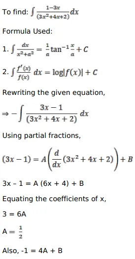 $\int \frac{(1-3 x)}{\left(3 x^{2}+4 x+2\right)} d x$