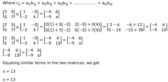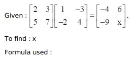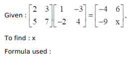 If $\left[\begin{array}{cc}2 & 3 \\ 5 & 7\end{array}\right]\left[\begin{array}{cc}1 & -3 \\ -2 & 4\end{array}\right]=\left[\begin{array}{cc}-4 & 6 \\ -9 & x\end{array}\right]$, find the value of $x$