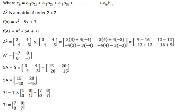 If $A=\left[\begin{array}{cc}3 & 4 \\ -4 & -3\end{array}\right]$, find $f(A)$, where $f(x)=x 2-5 x+7$