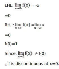 $f(x)=\left\{\begin{array}{l}-x, \text { when } x<0 \\ 1, \text { when } x=0 ; \text { is discontinuous at } x=0 \\ x, \text { when } x>0\end{array}\right.$
