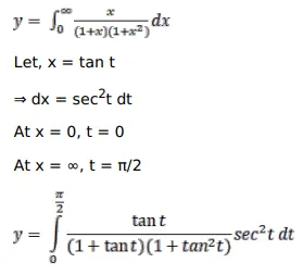 $\int_{0}^{\infty} \frac{x}{(1+x)\left(1+x^{2}\right)} d x=\frac{\pi}{4}$