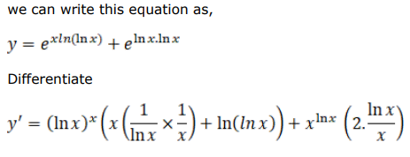 $y=\left((\log x)^{x}+(x)^{\log x}\right.$