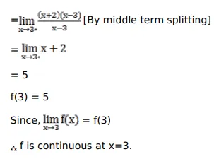 $f(x)=\left\{\begin{aligned} \frac{x^{2}-x-6}{x-3}, & \text { when } x \neq 3 \\ 5, \text { when } x=3 \end{aligned}\right.$ is continuous at $x=3$