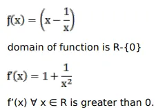 Show that $f(\mathrm{x})=\left(\mathrm{x}-\frac{1}{\mathrm{x}}\right)$ is increasing all $\mathrm{x} \in \mathrm{R}$, where $\mathrm{x} \neq 0$
