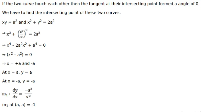 Show that the curves $x y=a^{2}$ and $x^{2}+y^{2}=2 a^{2}$ touch each other.