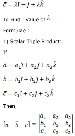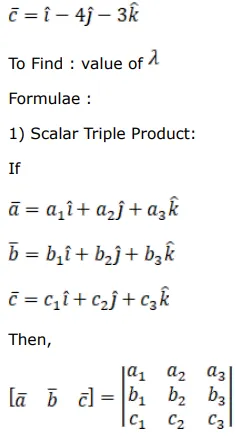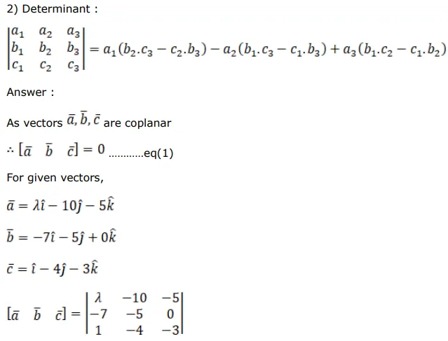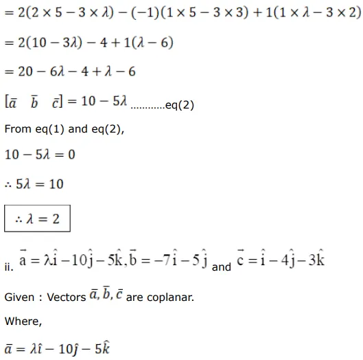 ii. $\overrightarrow{\mathrm{a}}=\lambda \hat{\mathrm{i}}-10 \hat{\mathrm{j}}-5 \hat{\mathrm{k}}, \overrightarrow{\mathrm{b}}=-7 \hat{\mathrm{i}}-5 \hat{\mathrm{j}}$ and $\overrightarrow{\mathrm{c}}=\hat{\mathrm{i}}-4 \hat{\mathrm{j}}-3 \hat{\mathrm{k}}$
