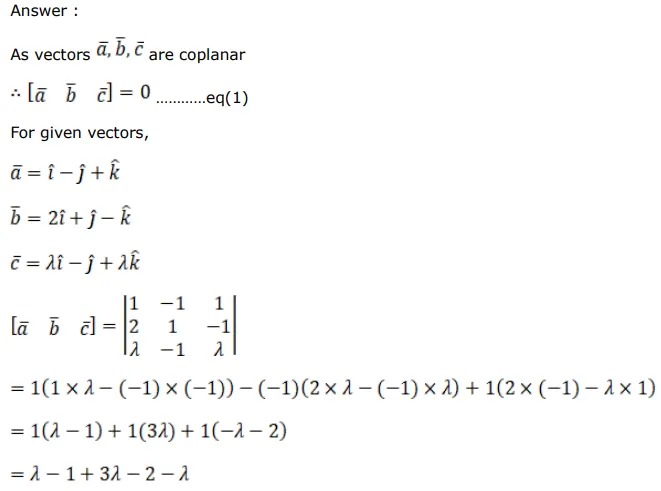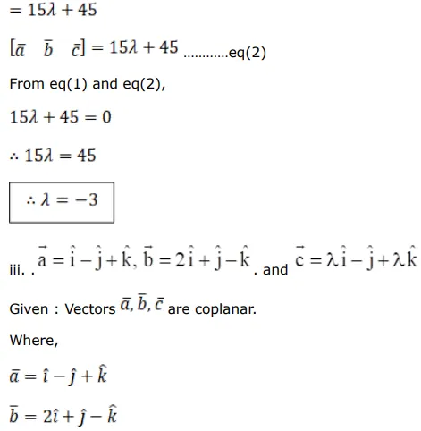 iii. $\overrightarrow{\mathrm{a}}=\hat{\mathrm{i}}-\hat{\mathrm{j}}+\hat{\mathrm{k}}, \overrightarrow{\mathrm{b}}=2 \hat{\mathrm{i}}+\hat{\mathrm{j}}-\hat{\mathrm{k}}$ and $\overrightarrow{\mathrm{c}}=\lambda \hat{\mathrm{i}}-\hat{\mathrm{j}}+\lambda \hat{\mathrm{k}}$