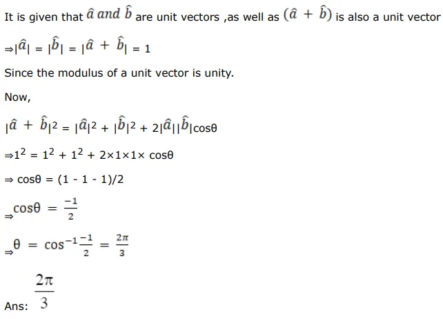 If $\hat{\mathrm{a}}$ and $\hat{\mathrm{b}}$ are unit vectors such that $(\hat{\mathrm{a}}+\mathrm{b})$ is a unit vector, what is the angle between $\hat{\mathrm{a}}$ and $\hat{\mathrm{b}}$ ?