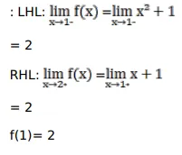 Show that: $f(x)=\left\{\begin{array}{ll}x+1, & \text { if } x \geq 1 \\ x^{2}+1, & \text { if } x<1\end{array}\right.$ is continuous at $x=1$