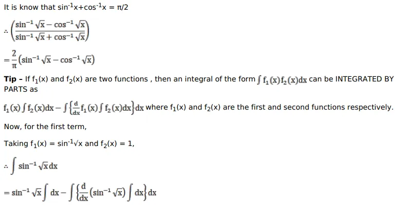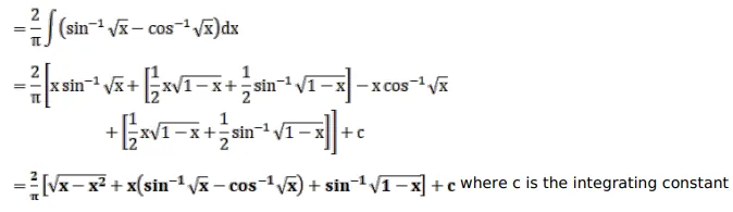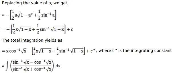 $\int\left(\frac{\sin ^{-1} \sqrt{x}-\cos ^{-1} \sqrt{x}}{\sin ^{-1} \sqrt{x}+\cos ^{-1} \sqrt{x}}\right) d x$