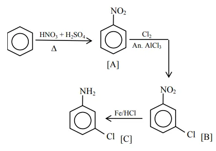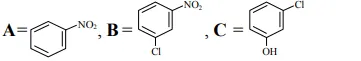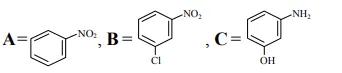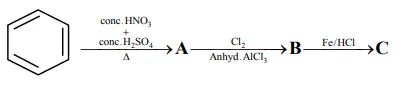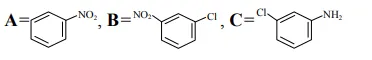 Identify correct $\mathbf{A}, \mathbf{B}$ and $\mathbf{C}$ in the reaction sequence given below: