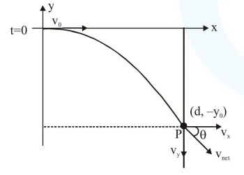 time taken to reach at 'P' $=\frac{\mathrm{d}}{\mathrm{v}_{0}}=\mathrm{t}_{0}$ (let) ...(1)