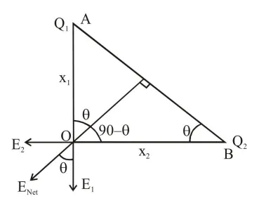$\tan \theta=\frac{E_{2}}{E_{1}}=\frac{x_{1}}{x_{2}}$