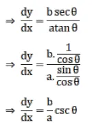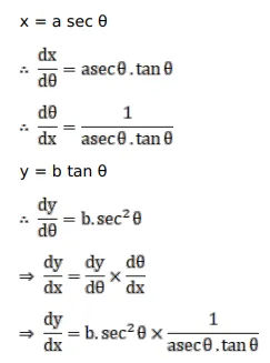 If $\mathrm{x}=\mathrm{a} \sec \theta, \mathrm{y}=\mathrm{b} \tan \theta$ then $\frac{\mathrm{dy}}{\mathrm{dx}}=$ ?
