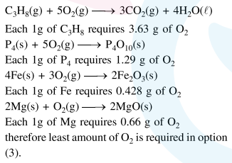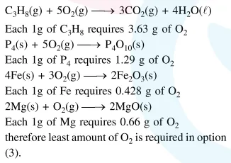 Question: The minimum amount of $\mathrm{O}_{2}(\mathrm{~g})$ consumed per gram of reactant is for the reaction: