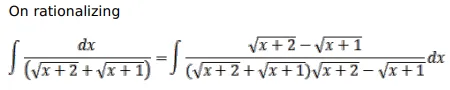 $\int \frac{d x}{(\sqrt{x+2}+\sqrt{x+1})}$