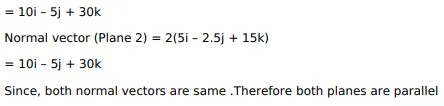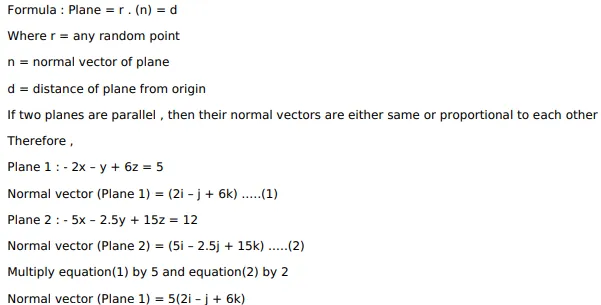 Show that the planes $2 x-y+6 z=5$ and $5 x-2.5 y+15 z=12$ are parallel.