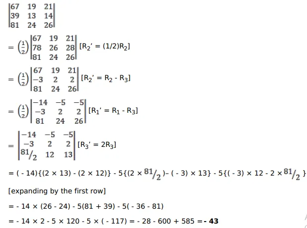 Evaluate: $\left|\begin{array}{lll}67 & 19 & 21 \\ 39 & 13 & 14 \\ 81 & 24 & 26\end{array}\right|$