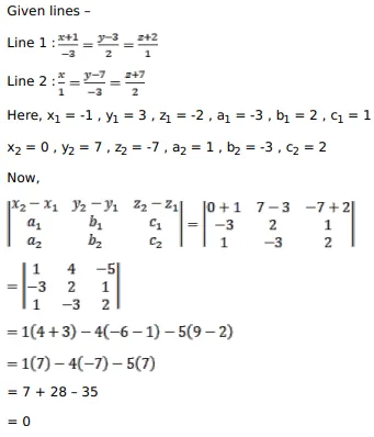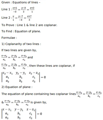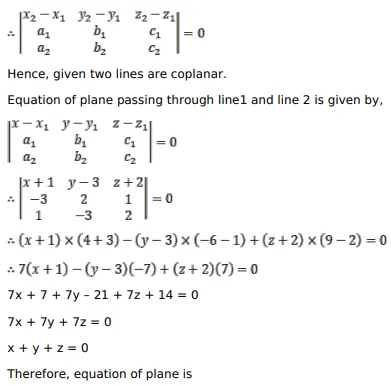 Show that the lines $\frac{x-1}{-3}=\frac{y-3}{2}=\frac{z-2}{1}$ and $\frac{x}{1}=\frac{y-7}{-3}=\frac{z+7}{2}$ are coplanar. Find the equation of the plane containing these lines.