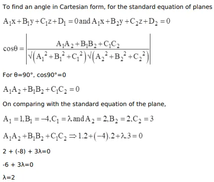 Find the value of $\lambda$ for which the planes $x-4 y+\lambda z+3=0$ and $2 x+2 y+3 z=5$ are perpendicular to each other.