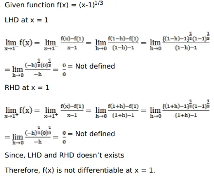 Show that $f(x)=(x-1)^{1 / 3}$ is not differentiable at $x=1$.