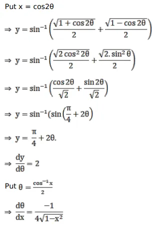 If $y=\sin ^{-1}\left\{\frac{\sqrt{1+x}+\sqrt{1-x}}{2}\right\}$ then $\frac{d y}{d x}=?$