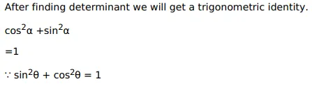 Evaluate $\left|\begin{array}{cc}\cos \alpha & -\sin \alpha \\ \sin \alpha & \cos \alpha\end{array}\right|$