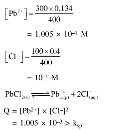 Which of the following choices is correct for a mixture of $300 \mathrm{~mL} 0.134 \mathrm{M} \mathrm{Pb}\left(\mathrm{NO}_{3}\right)_{2}$ and $100 \mathrm{~mL} 0.4 \mathrm{M} \mathrm{NaCl}$ ?
