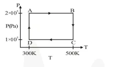 Directions : Question number 1,2 and 3 are based on the following paragraph. Two moles of helium gas are taken over the cycle ABCDA, as shown in the $\mathrm{P}-\mathrm{T}$ diagram.