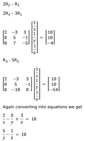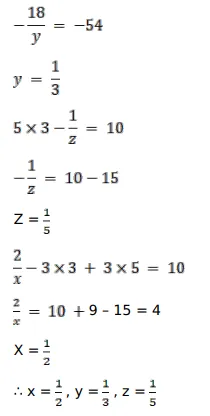 $\frac{2}{x}-\frac{3}{y}+\frac{3}{z}=10, \frac{1}{x}+\frac{1}{y}+\frac{1}{z}=10$