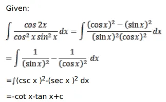 $\int \frac{\cos 2 x}{\cos ^{2} x \sin ^{2} x} d x=?$
