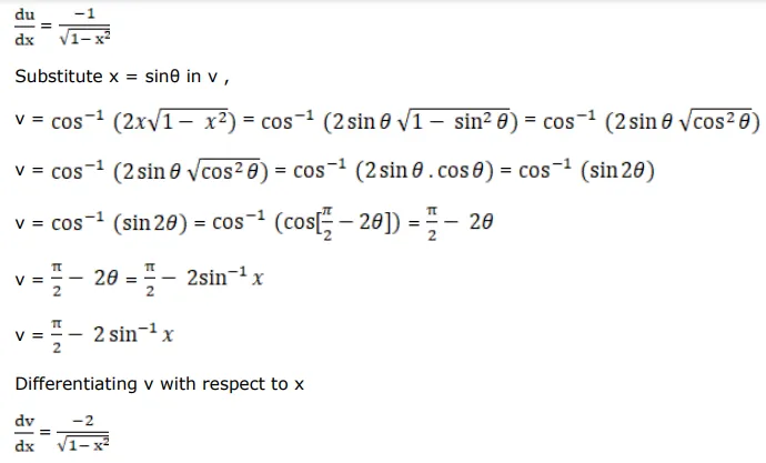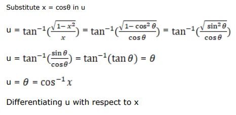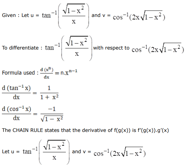Differentiate $\tan ^{-1}\left(\frac{\sqrt{1-x^{2}}}{x}\right)$ with respect to $\cos ^{-1}\left(2 x \sqrt{1-x^{2}}\right)$ when $x \neq 0$